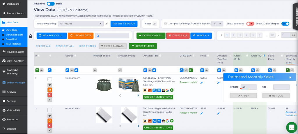 3. 继续缩小范围,可以选择只看预估月销量大于 40 的品